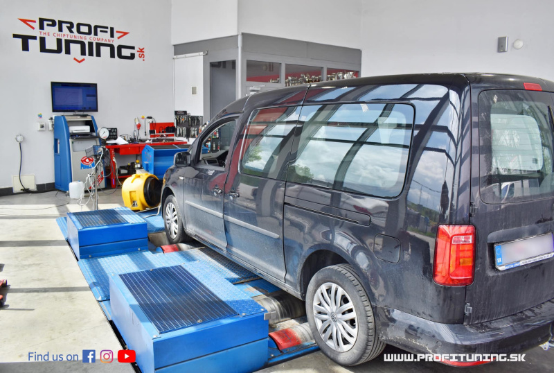 Tentokrát VW CADDY s motorom 2.0 TDI a technickým sériovým výkonom 102k (75kW) a 250Nm (DFSD).