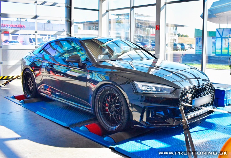 Ako prvým na Slovensku sa nám podarilo upraviť novú Audi RS5. Nové Audi RS 5 Coupé spája eleganciu s klasickým výkonom modelov RS. Motor 2.9 TFSI V6 BiTurbo s výkonom 331kW (450k) a maximálnym krútiacim momentom 600Nm je prísľubom športového charakteru a sily. Obidve turbodúchadlá agregátu sú centrálne umiestnené medzi oboma radmi valcov. Nasávaný vzduch je ku každému turbodúchadlu a do spaľovacích priestorov privádzaný dvojprúdovo teda oddelene dvomi vetvami, vďaka čomu je odozva motora pri každej otáčke spontánna a dynamická. Reálne odmeraný sériový výkon bol 450k a 630Nm. Ako vždy aj teraz sme sa snažili v dlhotrvajúcom procese ladenia tieto parametre vylepšiť. Po náročnom ladení sa nám podarilo dosiahnuť stabilný a bezpečný výkon v maximálnych otáčkach 495k (364kW) a 740Nm. V priebehu máme nárast výkonu vyšší a to +70k +125Nm. Citeľný nárast výkonu si pochvaľuje aj majiteľ, ktorý je veľmi spokojný s úpravou a AUDI RS5 nádherne ožila. V blízkej budúcnosti si plánuje kvôli zvukovému prejavu a aj nárastu výkonu nechať upraviť výfukový systém, kde by sme sa po tejto úprave vedeli pohybovať okolo výkonu 510 koní.