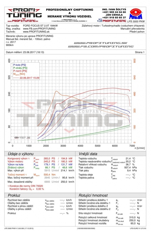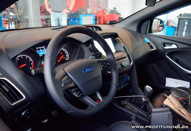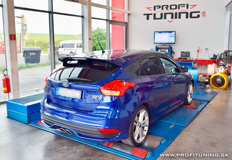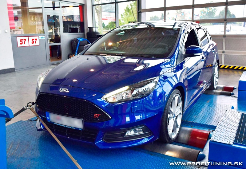 Opäť novinka z našej dielne - nový športový Ford Focus ST s motorom 2.0T a technickým sériovým výkonom 250k (184kW) a 360Nm. No realita je trošku odlišná, reálne nameraný sériový výkon bol 240k 380Nm. Po dôkladnom ladení sme výkon navýšili na 265k (195kW) a 500Nm. Nárast výkonu je obmedzený na jednotlivých častiach v tomto prípade je restrikcia na výfuk, saní a intercoolery.