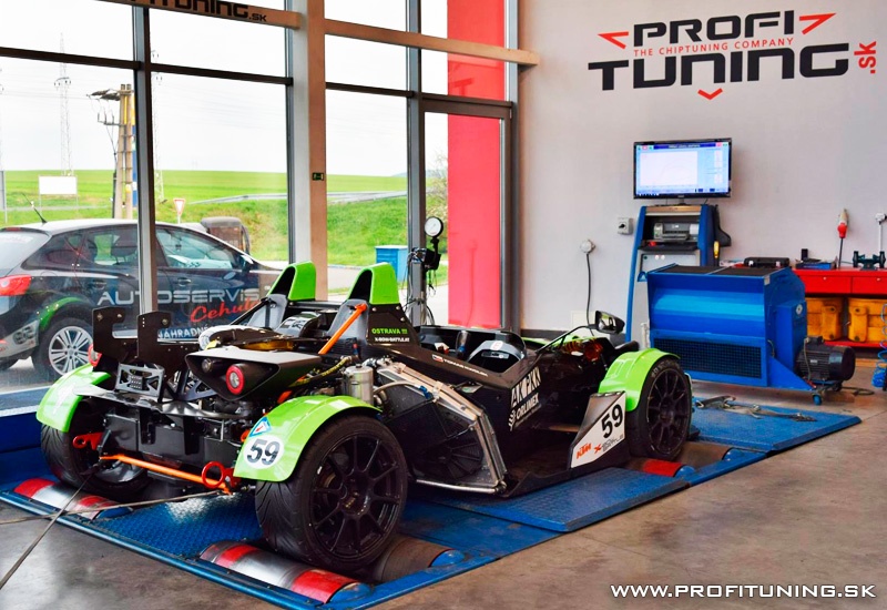 Prednedávnom sme ladili opäť jeden veľmi zaujímavý projekt, jedná sa KTM X-BOW s jemne upraveným motorom 2.0 TFSI pre závodné účely na pretekárskom okruhu. V motore sa vymenili základné komponenty, pre stabilnosť výkonu a vhodné pre tento agregát. No konkrétny popis je tajomstvom, ktorý si chcel ponechať pretekársky tým. Po našom dôkladnom naladení disponuje teraz KTM STABILNÝM výkonom 374k (275kW) a 533Nm a začína vyhrávať nejeden závod. Veríme,že sa im bude naďalej dariť. Video z ladenia podobneho KTM - https://www.youtube.com/watch?v=JKci_YB4d6A