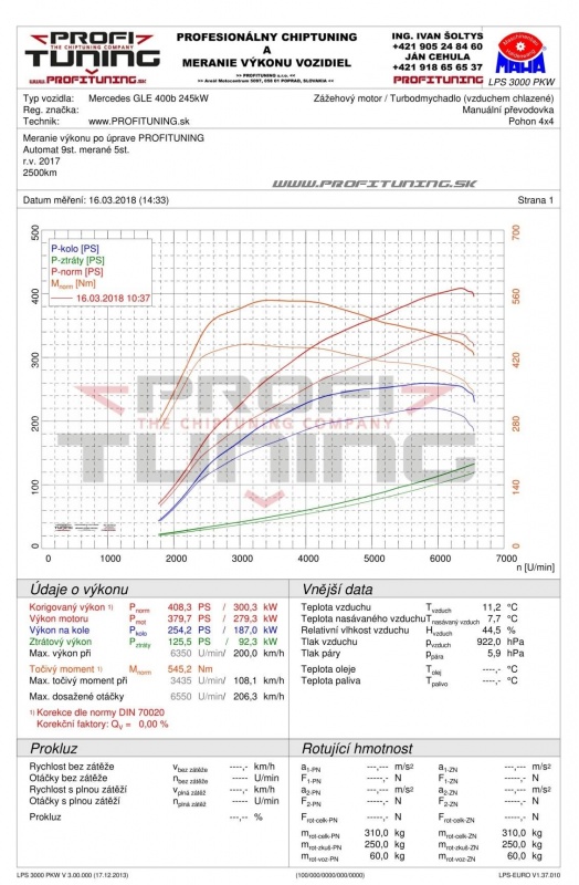 Reálne odmeraný sériový výkon bol 338k a 450Nm. Po našej dôkladnej softvérovej úprave sme výkon navýšili na citeľných 408k (300kW) a 545Nm.