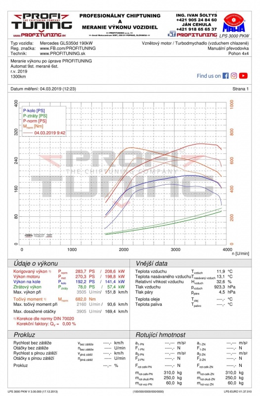 Dnes si predstavíme zaujímavé autíčko- krásny Mercedes Benz GLS 350d 4Matic, ktorý disponuje dieselovým motorom V6 Turbo s objemom 2.996 cm3 technickým sériovým výkonom 258k (190kW) a 620Nm s 9st. automatickou prevodovkou (9G-TRONIC). Reálne odmeraný sériový výkon bol 249k a 610Nm. Po našej dôkladnej softvérovej úprave sme výkon navýšili na citeľných 284k (209kW) a 682Nm.