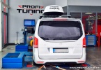 Táto konkrétna V200d disponuje sériovým technickým výkonom 136k (100kW) a 330Nm. Odmeraný sériový výkon bol 135k a 290Nm. Po dôkladnej softvérovej úprave sme výkon navýšili na 229k (168kW) a 522Nm! Čiže máme super nárast výkonu +95k (+68kW) a +232Nm a ten je na tomto aute naozaj skvelo cítiť. Ešte by som dodal, že táto prevodovka je konštruovaná do cca 700Nm. Používa ju aj Nové C43 AMG.