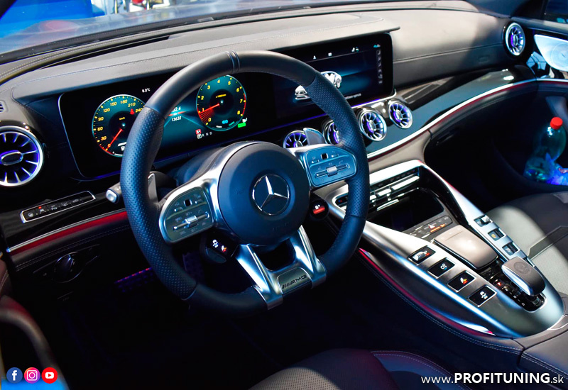 Mercedes-AMG GT je priami konkurent Porsche Panamera a spája očarujúcu výkonnosť športového vozidla s praktickosťou elegantného štvordverového vozidla.