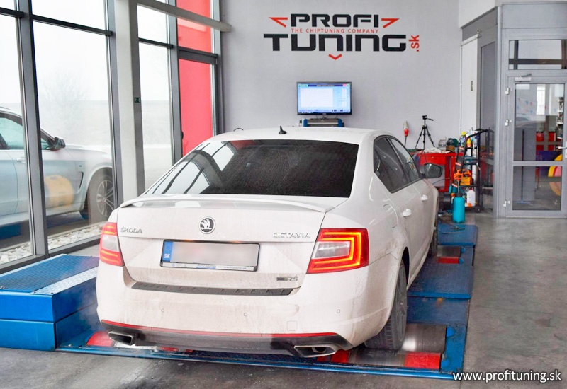 Obyčajná Octavia RS s neobyčajným výkonom. Technický sériový výkon tejto poslednej Octavie RS je 220k (162kW) a 350Nm. Natankované kvalitné palivo a odmeraný reálny sériový výkon bol 242k a 380Nm, čo je podstatne vyšší ako uvádza výrobca, no keďže sme týchto aut robili už mnoho vieme, že ich výkon je vyšší. Po štandardnej SW úprave sme Octaviu znovu odmerali a výkon po úprave je 314k (230kW) a 457Nm.