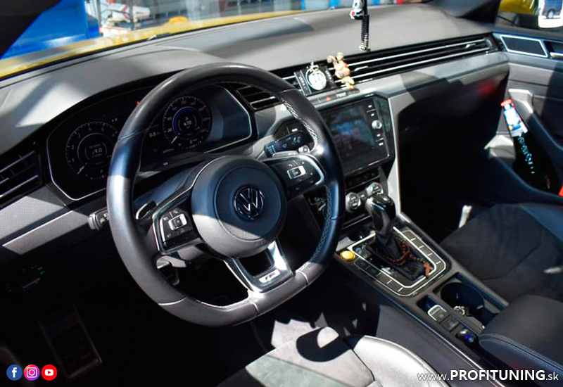 Pod dlhou kapotou motora modelu VW Arteon sa o dynamiku postarajú viaceré účinné motory a varianty pohonu. Táto konkrétna mala najvýkonnejší motor 2.0 TSI s technickým sériovým výkonom 280k (206kW) a 350Nm (kód motora DJHC).