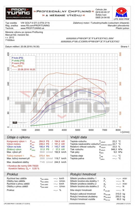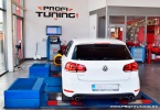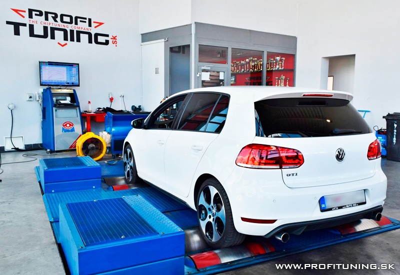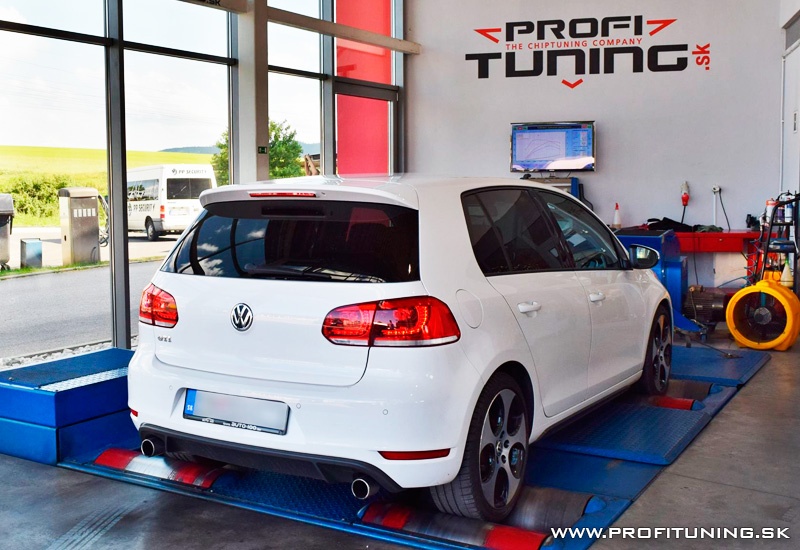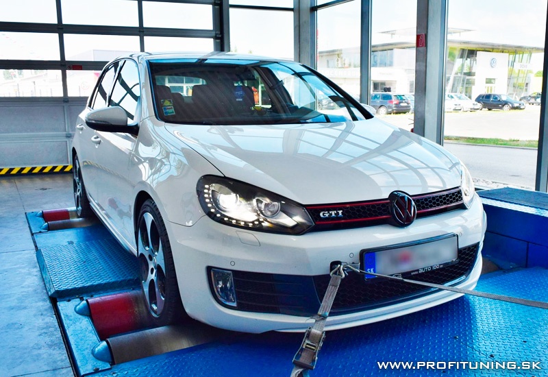 Sen každého správneho mladíka - VW GOLF 6 GTi s motorom 2.0 TSI a sériovým výkonom 211k (155kW) a 280Nm si priam žiada o úpravu. Odmeraný sériový výkon bol 215k a necelých 300Nm, no po našej len SW úprave na 95 oktánovom benzín sme upravili výkon na bezpečných 265k (195kW) a 370Nm s prekrásnym priebehom.